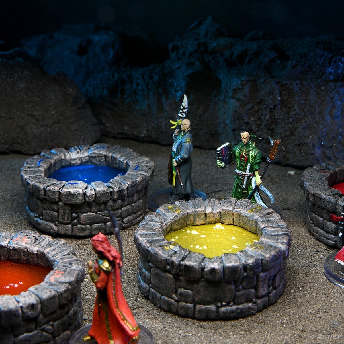 Pathfinder Battles: Return of the Runelords bevat 14 geheel nieuwe miniaturen die zeven van de meest iconische schurken van Pathfinder's Lost Omens-setting vertegenwoordigen - de runelords van het oude Thassilon - evenals zeven magische runewells, elk gekoppeld aan een dodelijke zonde